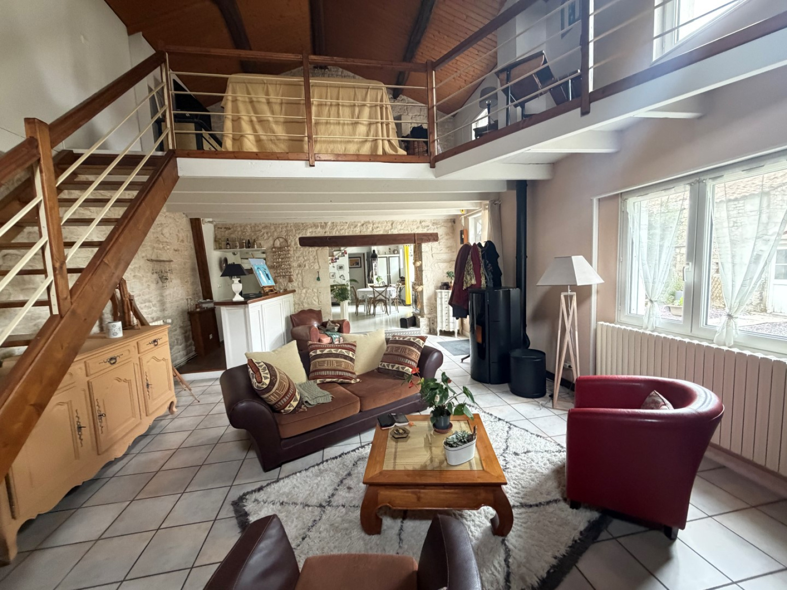 À l’étage, vous trouverez deux chambres, un bureau et une mezzanine offrant la possibilité d’aménager une troisième chambre selon vos besoins.