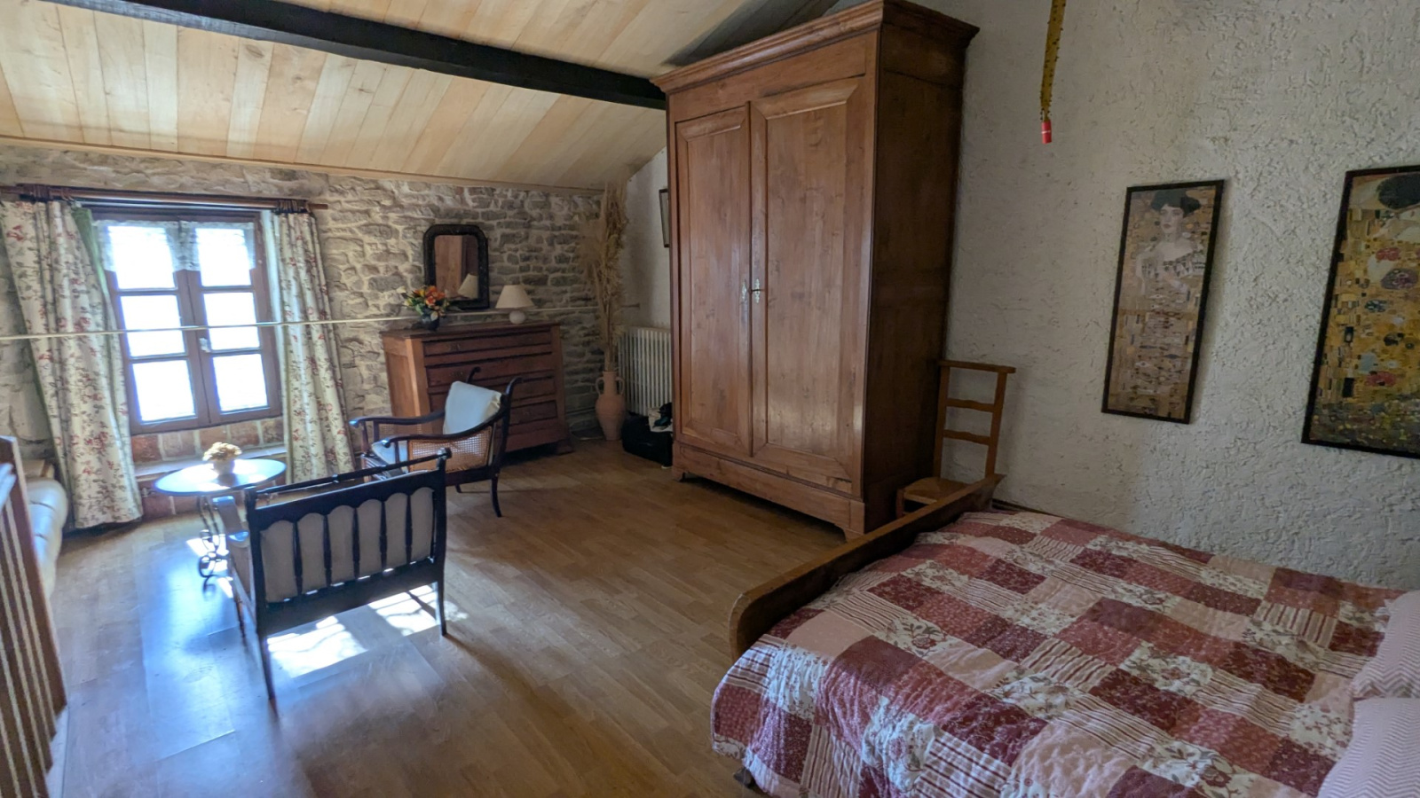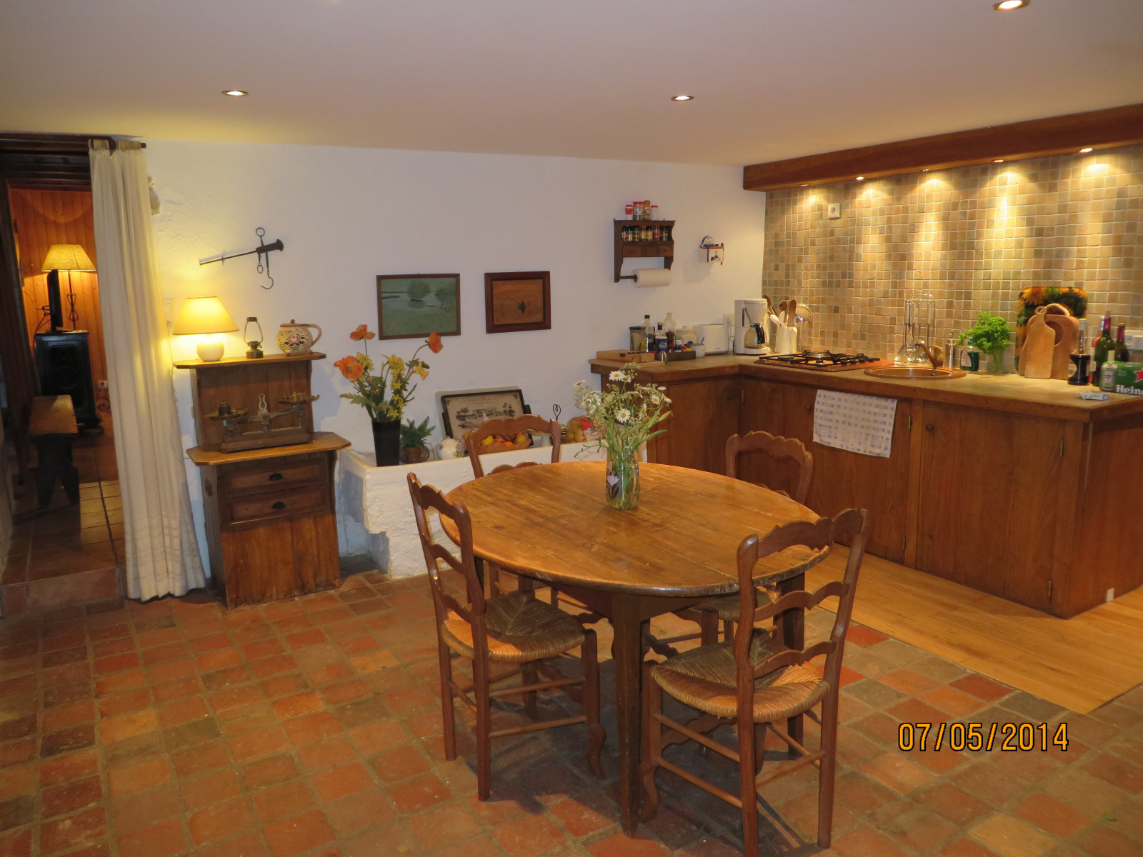 Elle est composée d'une cuisine avec tomettes, un salon séjour avec un poêle à bois neuf installé en Aout 2025. Une salle de bain très récente complète cette maison. A l'étage, vous y trouverez 3 chambres avec vue rivière et un bureau. A l'exterieur, deux terrasses dont une avec cuisine d'été.