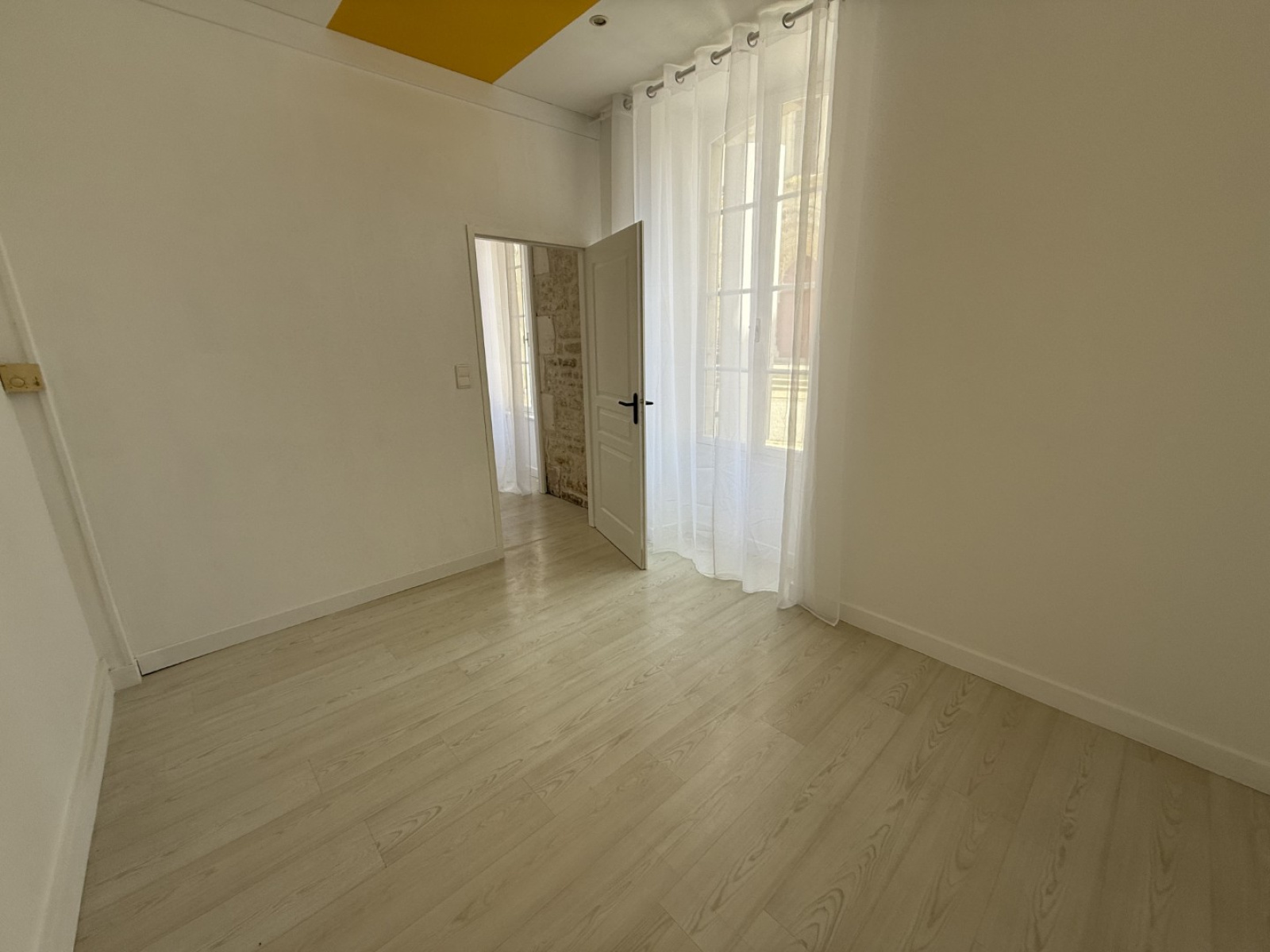 1 T2 bis libre de toute occupation composé d'une entrée, d'une cuisine-séjour, une chambre, un bureau, une salle d'eau, un WC et un cellier.