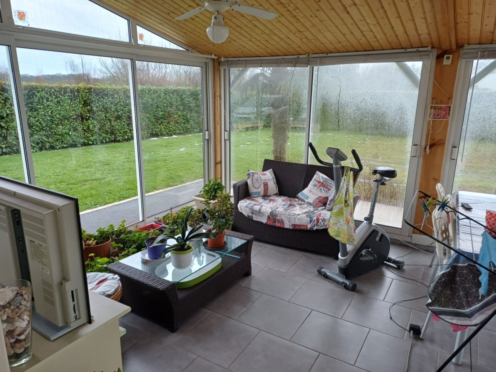 Au rez-de-chaussée : un grand garage, une cave, une arrière cuisine, une chambre, une salle d'eau, une piéce et une véranda lumineuse.